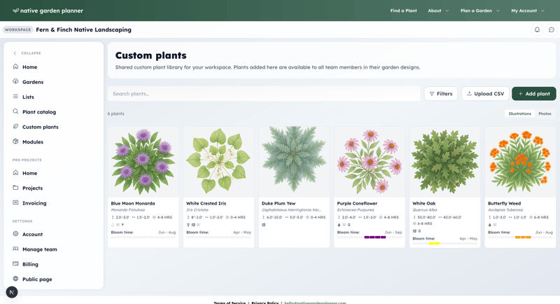Native Garden Planner started as a free tool for anyone to design a native garden. Now it scales with you — from a single backyard project to a shared library for your organization, to a full client workflow for your design practice.